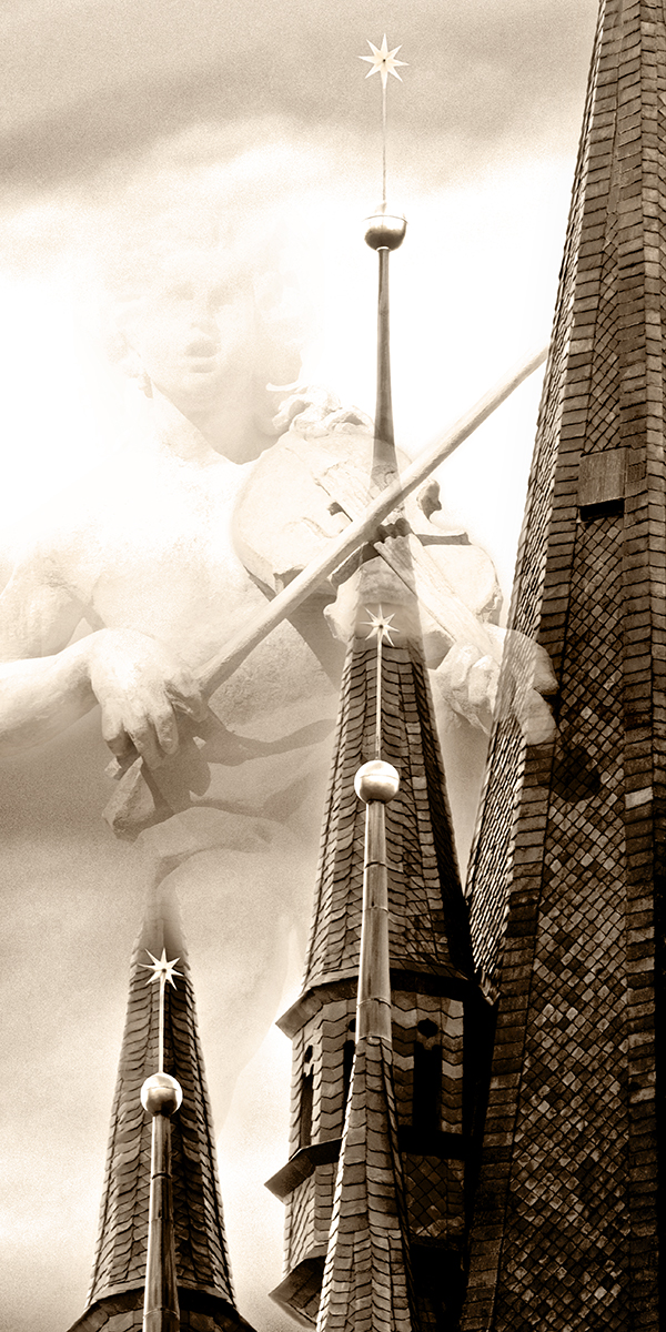 Flèches en toiture d’une autre église, monumentale, également à Prague